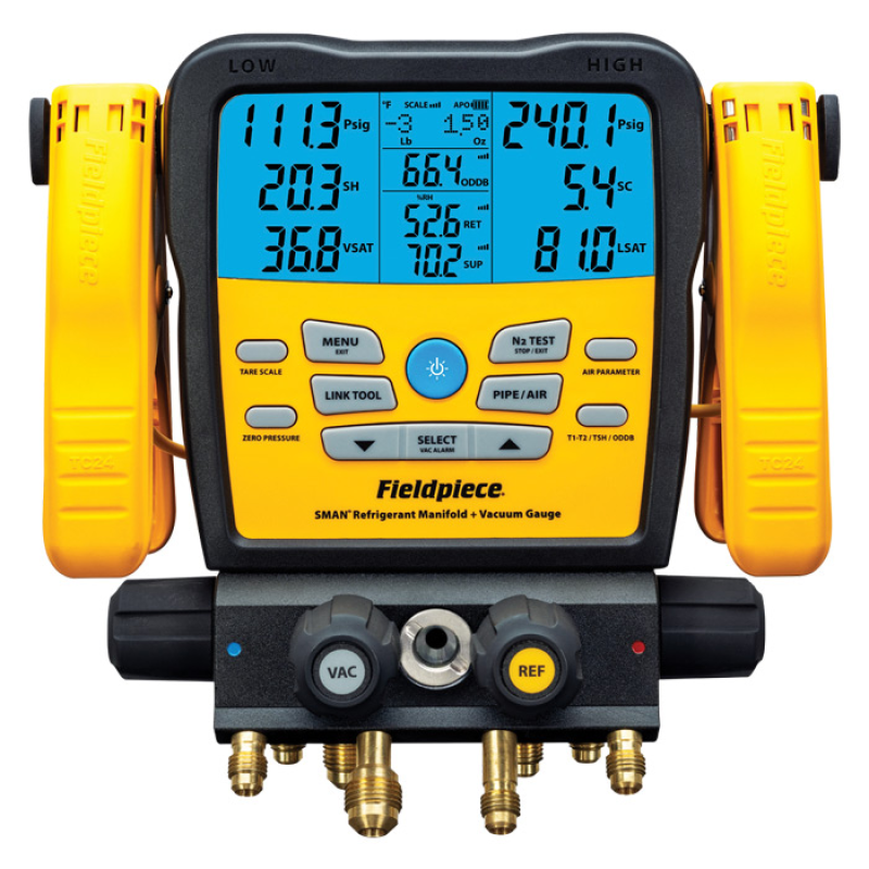 De Fieldpiece SM482V is een professionele digitale manifold met geavanceerde functies voor het snel, efficiënt en betrouwbaar afstellen en onderhouden van airconditioning-, koel- en warmtepompsystemen.