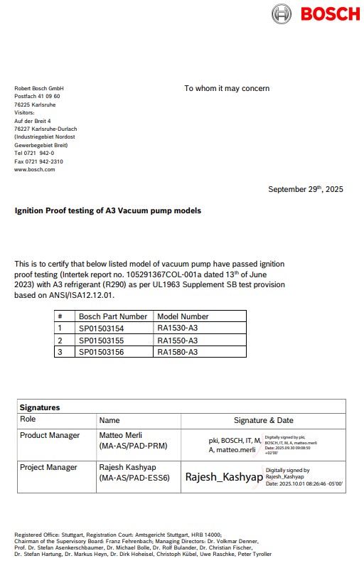 - Optional Exhaust Venting Kit (RA1500-A3) for use when evacuating systems running with flammable refrigerants