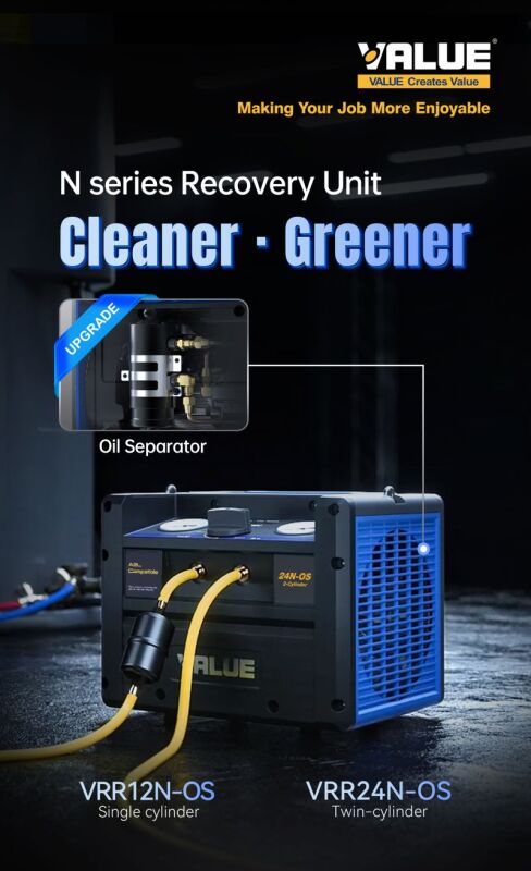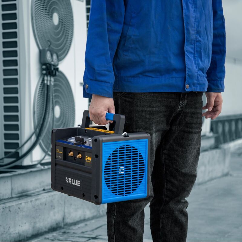 De VALUE VRR12N-OS is een compacte en krachtige recovery unit, ontworpen voor het snel en veilig terugwinnen van HFC, HCFC en A2L koudemiddelen zoals R32 en R1234yf. Dankzij het lichte en robuuste ontwerp is deze unit ideaal voor service- en installatiewerkzaamheden in de HVAC/R-sector.