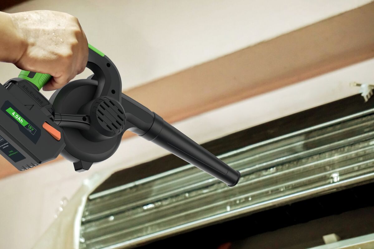De BV100B is een draadloze blow-vac cleaner speciaal ontwikkeld voor airco-installatie, onderhoud en (diep) reinigen. Ideaal voor het snel wegblazen van vuil en stof uit binnen- en buitendelen, maar óók om na afloop gericht te zuigen zodat er geen rommel achterblijft.