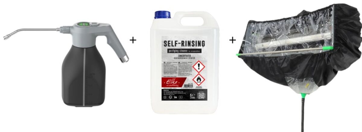 Met deze complete WIPCOOL Startkit reinigt u moeiteloos en veilig elke airco-binnenunit. De krachtige C2BW elektrische sprayer vernevelt het reinigingsmiddel tot diep in de lamellen, terwijl de opvangzak al het vuile water en schoonmaakmiddel netjes opvangt. Zo werkt u schoon, efficiënt en zonder geknoei.